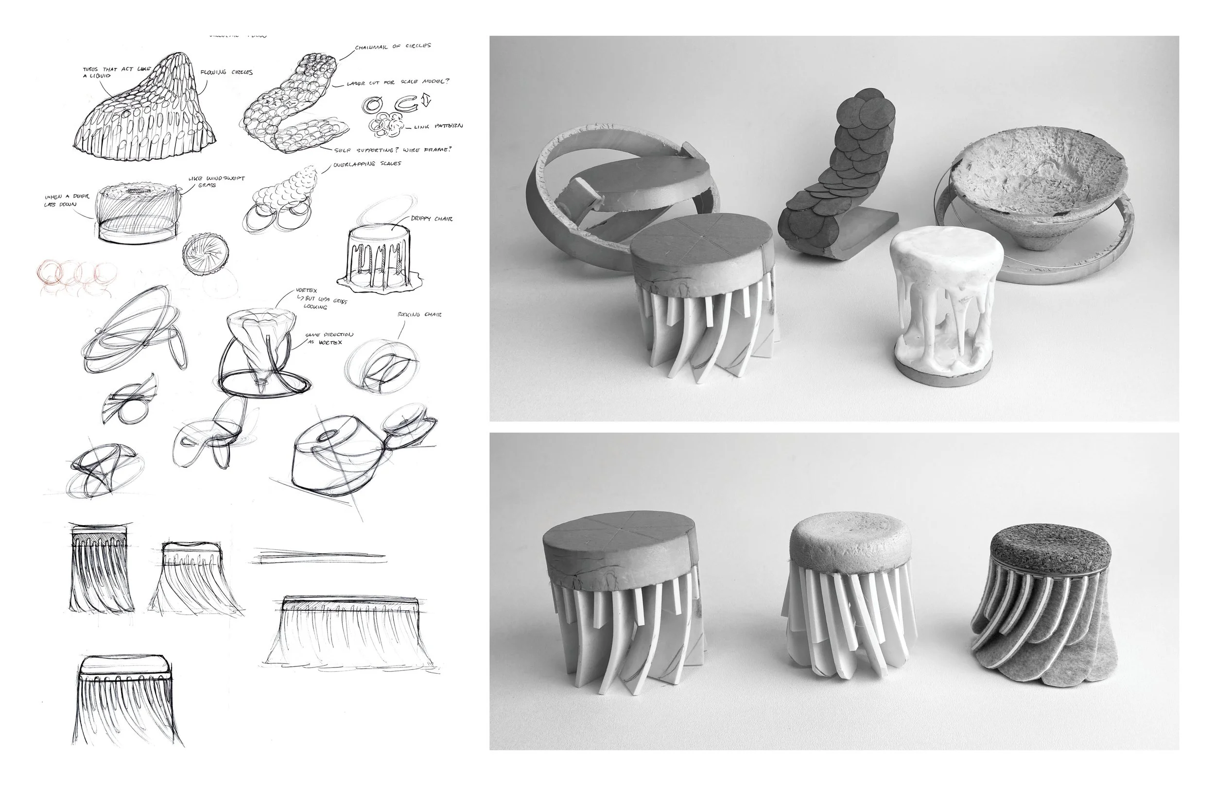 Tuft is an interactive chair designed around the concepts of "circular" and "flow," drawn at random. Its flexible structure adapts to your movement, offering a supportive, yet playful seating experience
